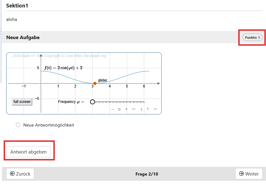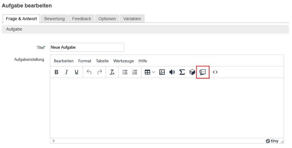 Aufgabe bearbeiten: Aufgabenstellung > in der Symbolleiste das Graphen-Icon auswählen